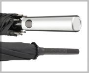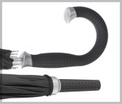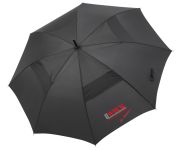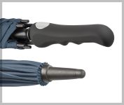 Bicolor-Griff mit SOFT TOUCH-Beschichtung, 3-fach-Teleskopstab mit Aluminium-Gestell.Bespannung: Polyester-Pongee