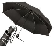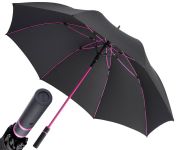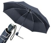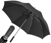 Komfortable Öffnungsautomatik, maximale Gestell-Flexibilität (Windproof-System) bei stärkeren Windböen, flexible Fiberglasschienen, stabiler Stahlstock mit farbiger Kunststoffummantelung, gerader Softfeel-Griff mit farbigen Griffringen.Bespannung: Polyester-Pongee