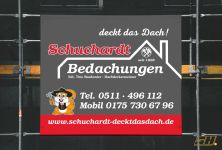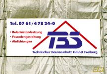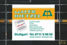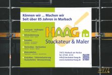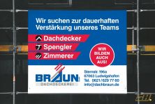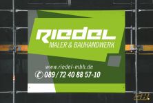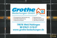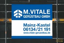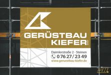 Die Spannplane ist ein großflächiger und flexibler Werbeträger für den Einsatz am Baugerüst oder Bauzaun.