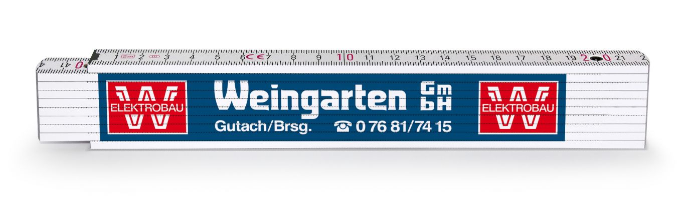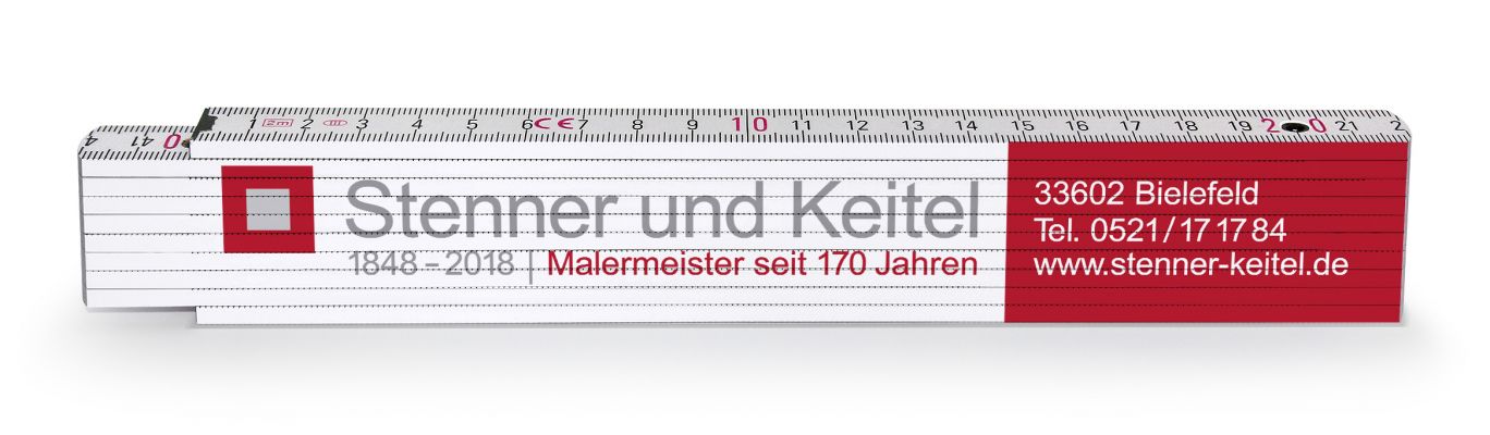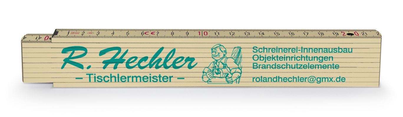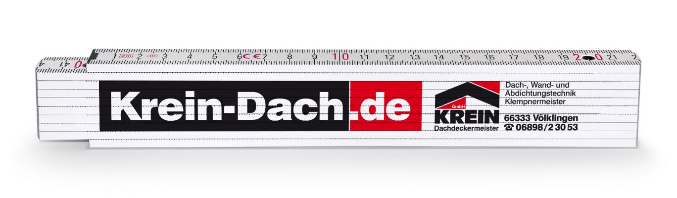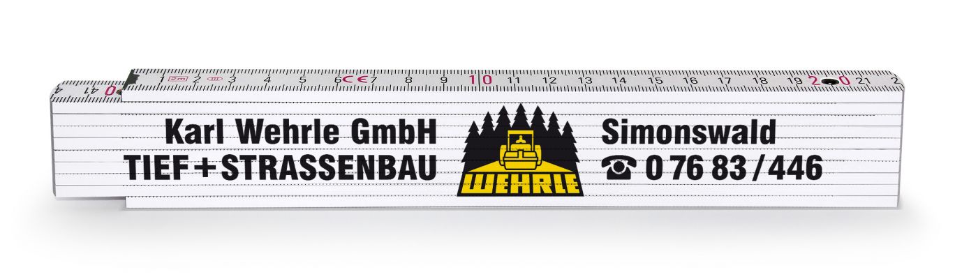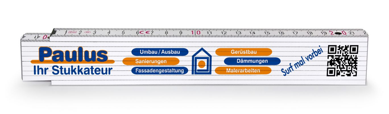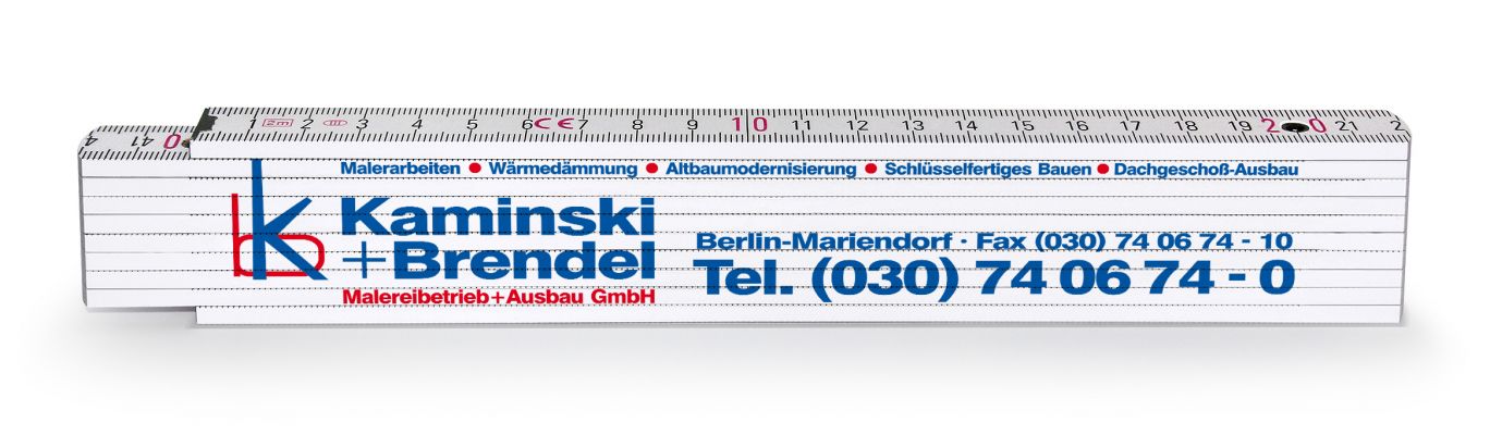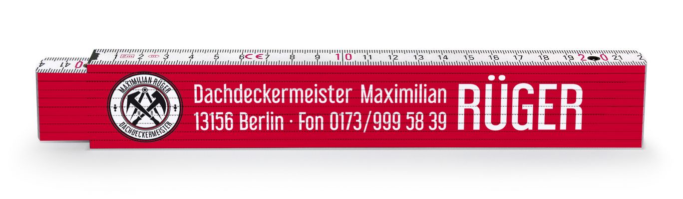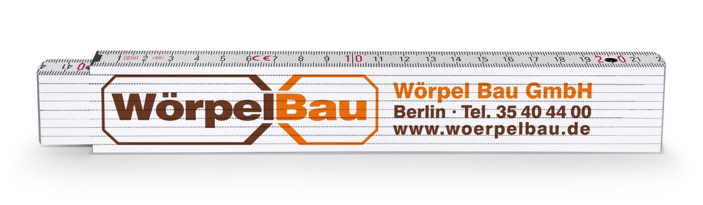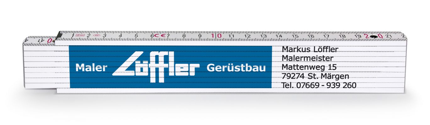 Unsere hochwertigen Zollstöcke garantieren Ihnen einen Werbeträger, der Ihr Unternehmen lange Zeit repräsentiert. Hochwertig in Material und Druck, von unserer Grafikabteilung werbewirksam und prägnant gestaltet.