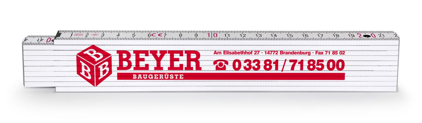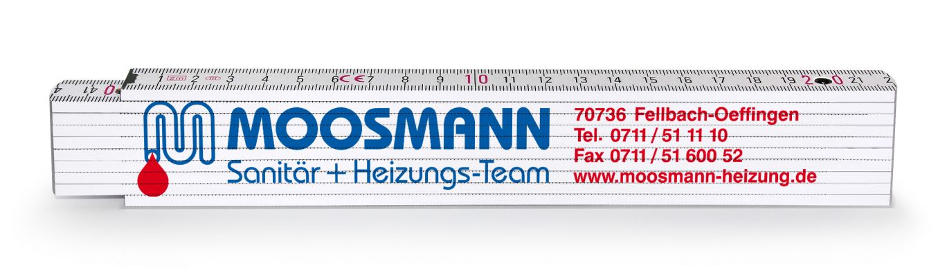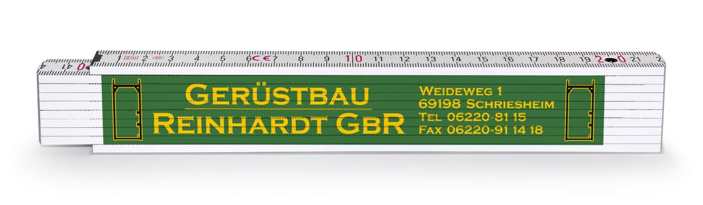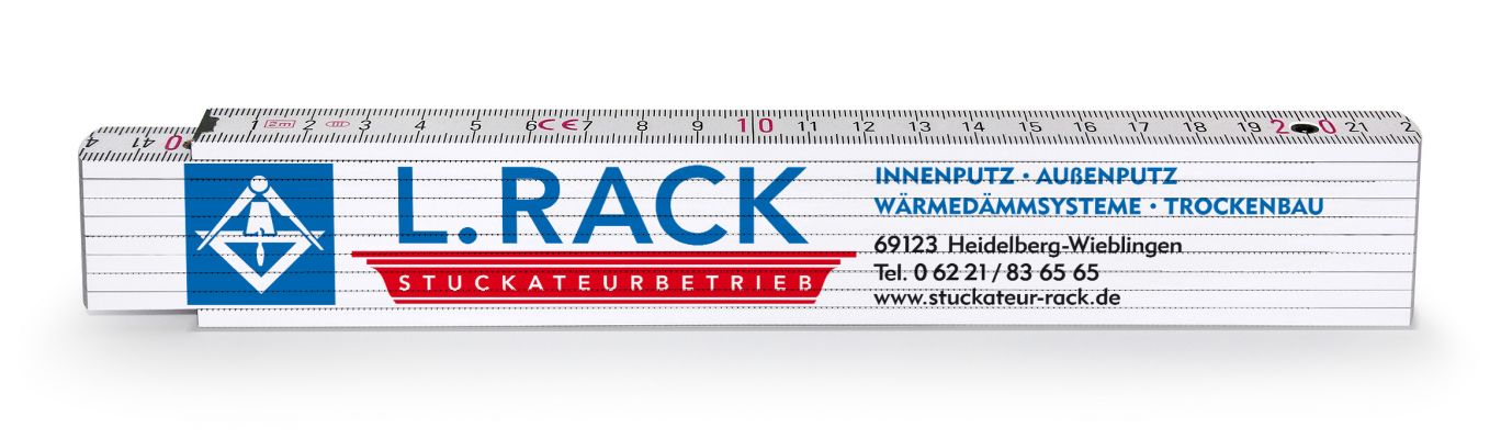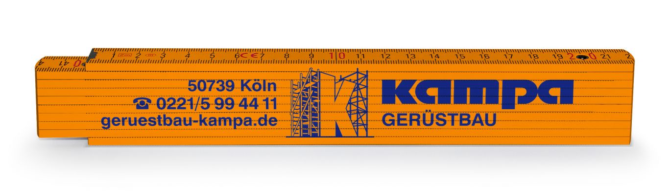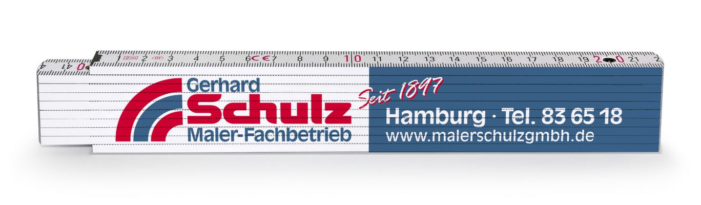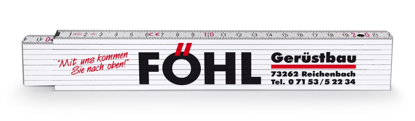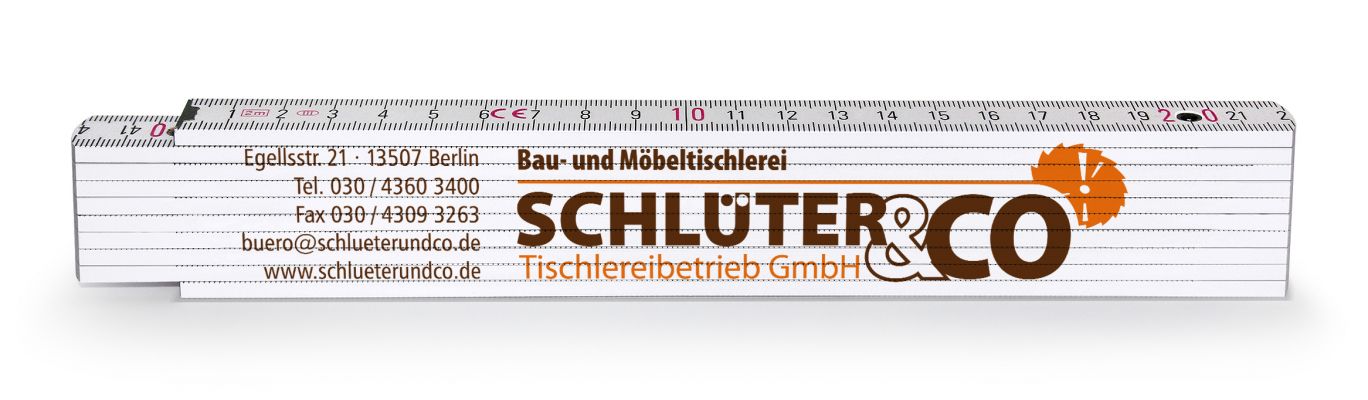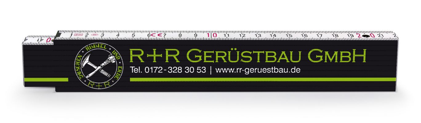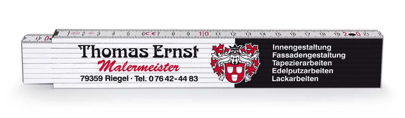 Unsere hochwertigen Zollstöcke garantieren Ihnen einen Werbeträger, der Ihr Unternehmen lange Zeit repräsentiert. Hochwertig in Material und Druck, von unserer Grafikabteilung werbewirksam und prägnant gestaltet.