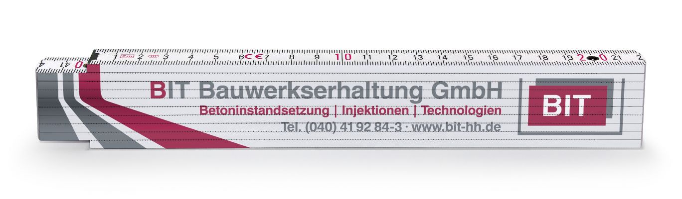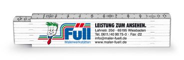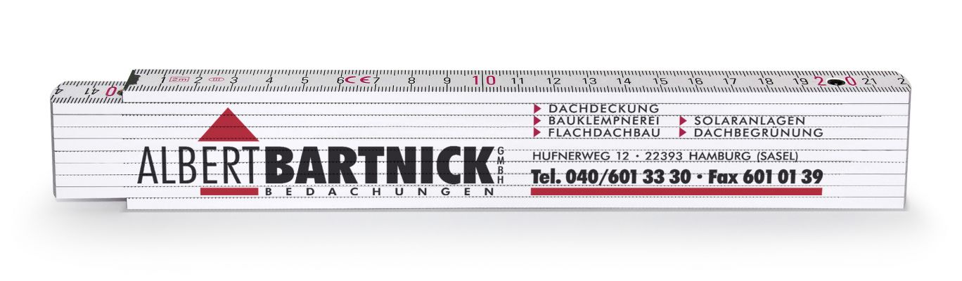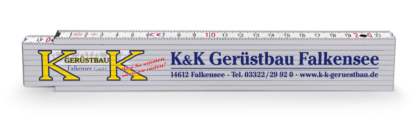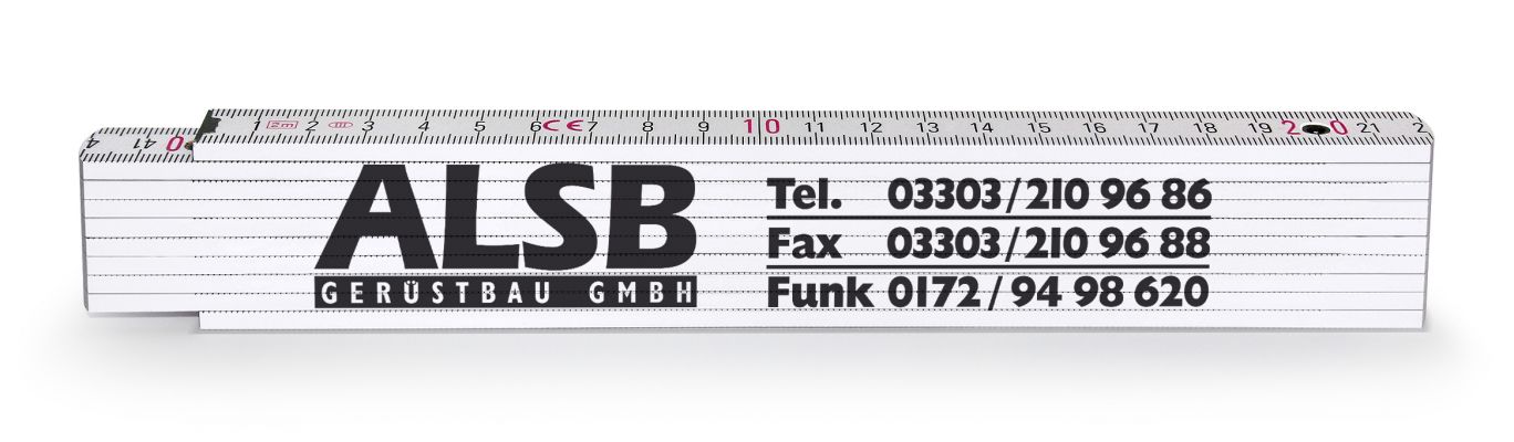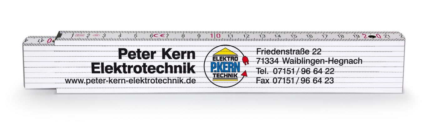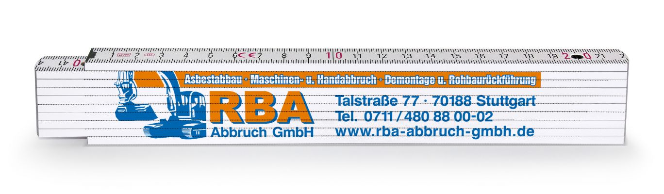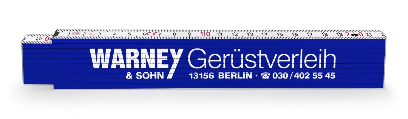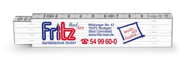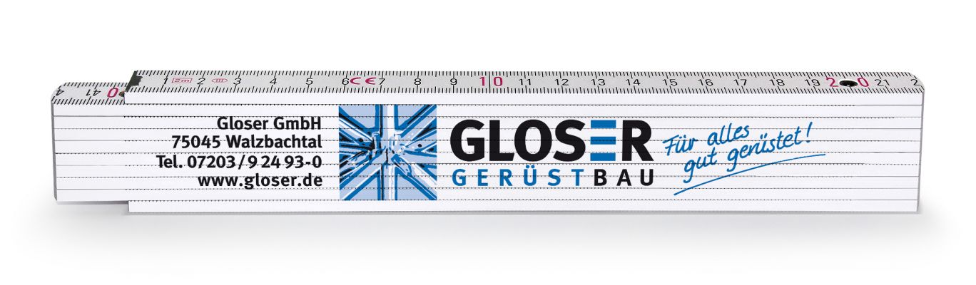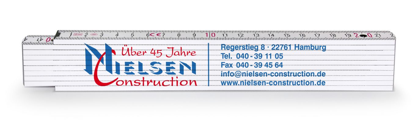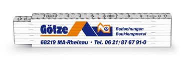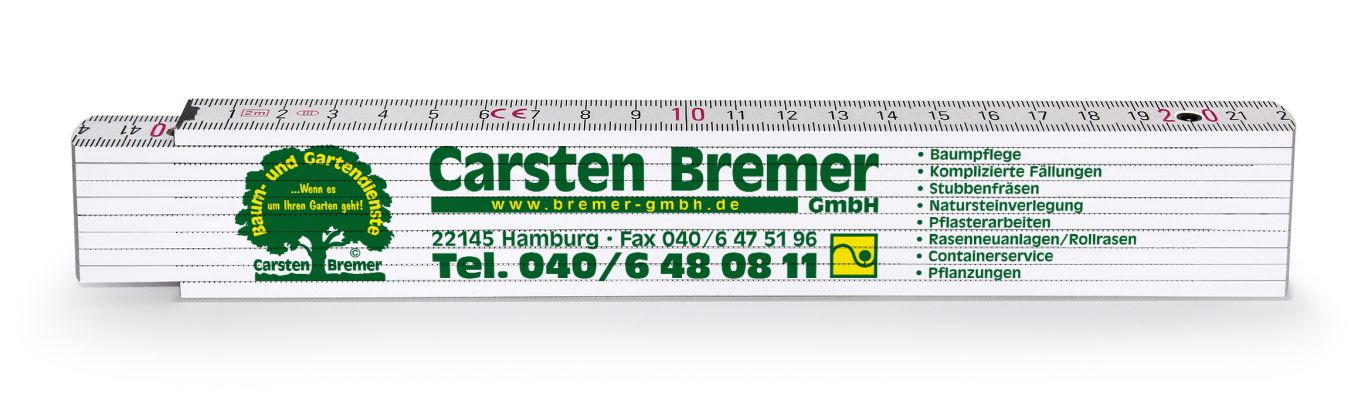 Unsere hochwertigen Zollstöcke garantieren Ihnen einen Werbeträger, der Ihr Unternehmen lange Zeit repräsentiert. Hochwertig in Material und Druck, von unserer Grafikabteilung werbewirksam und prägnant gestaltet.