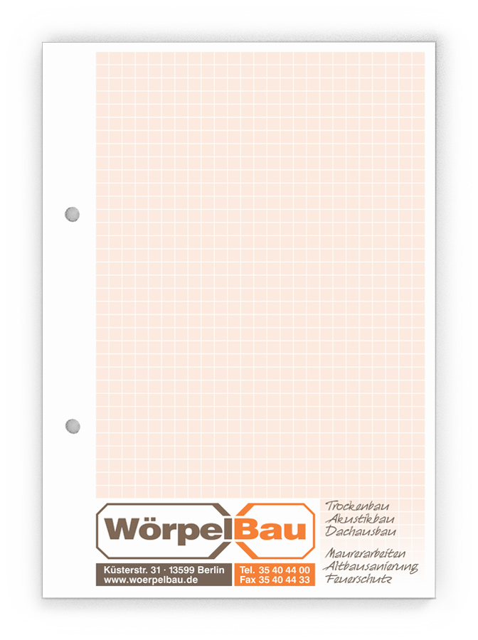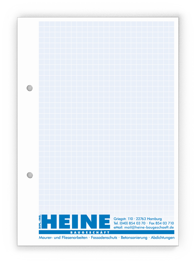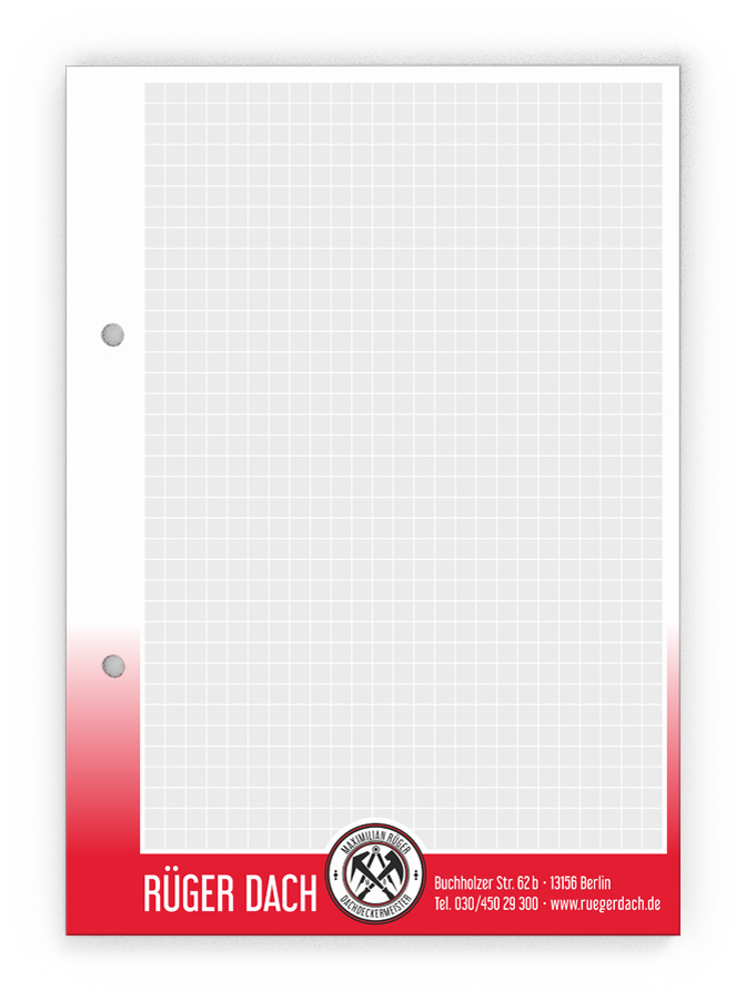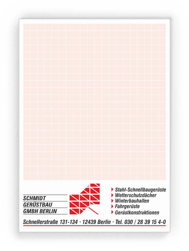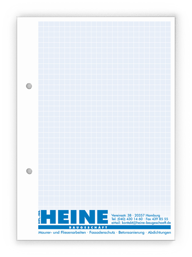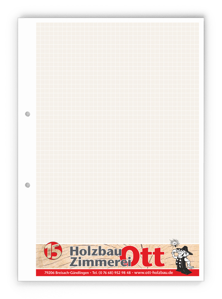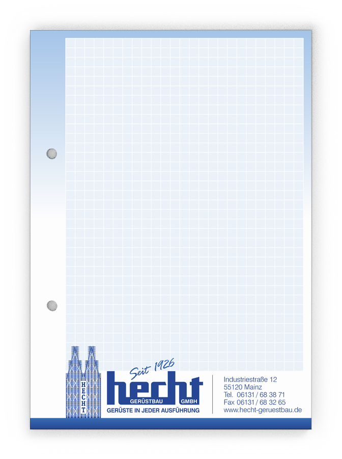 50x Ihre Werbung, die jeden Tag gelesen wird.Unsere Gesprächsnotizblöcke sind auch für Sie der richtige Streuartikel! Der preiswerte und unentbehrliche Werbeträger. Täglich für Ihr Unternehmen im Einsatz. Dank der praktischen Lochung wird Ihre Werbung sogar abgeheftet.