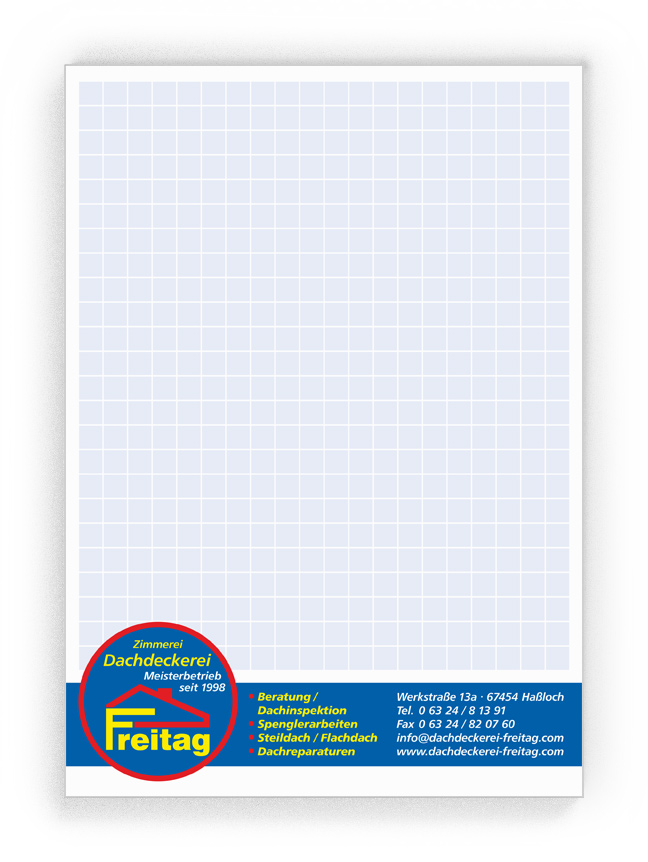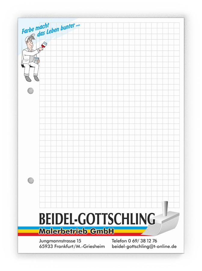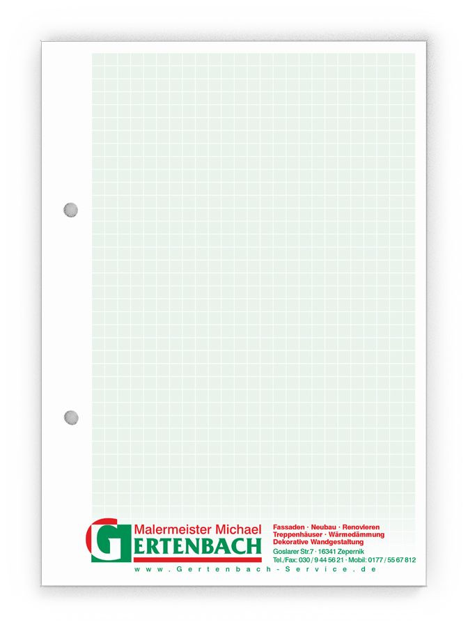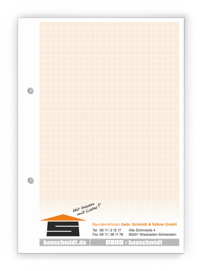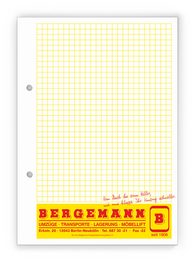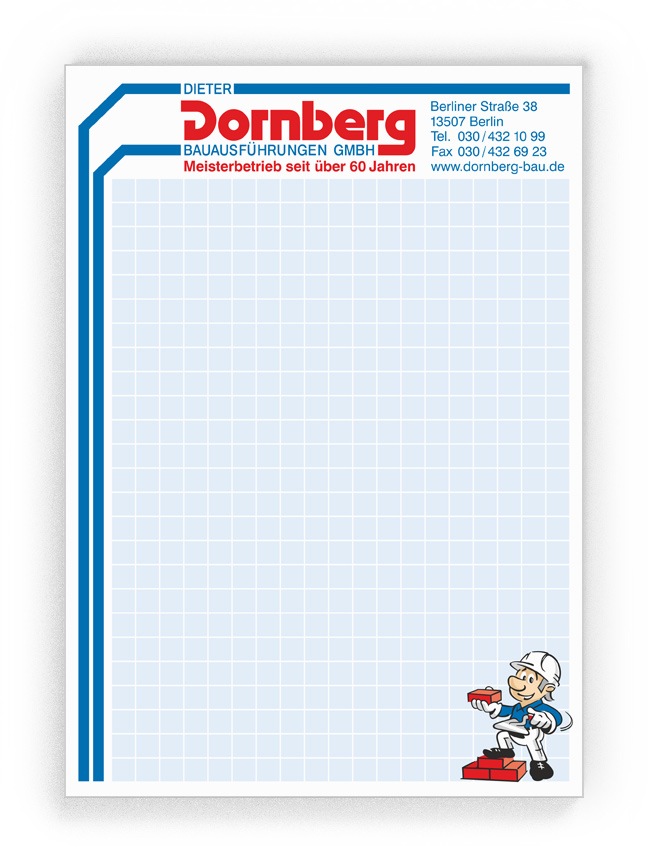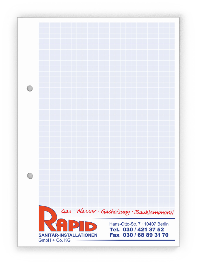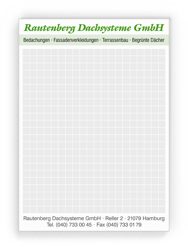 50x Ihre Werbung, die jeden Tag gelesen wird.Unsere Gesprächsnotizblöcke sind auch für Sie der richtige Streuartikel! Der preiswerte und unentbehrliche Werbeträger. Täglich für Ihr Unternehmen im Einsatz. Dank der praktischen Lochung wird Ihre Werbung sogar abgeheftet.