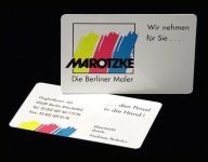 Material: 0,5 mm Kunststoff, hochglänzend · Druck: beidseitig