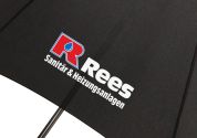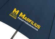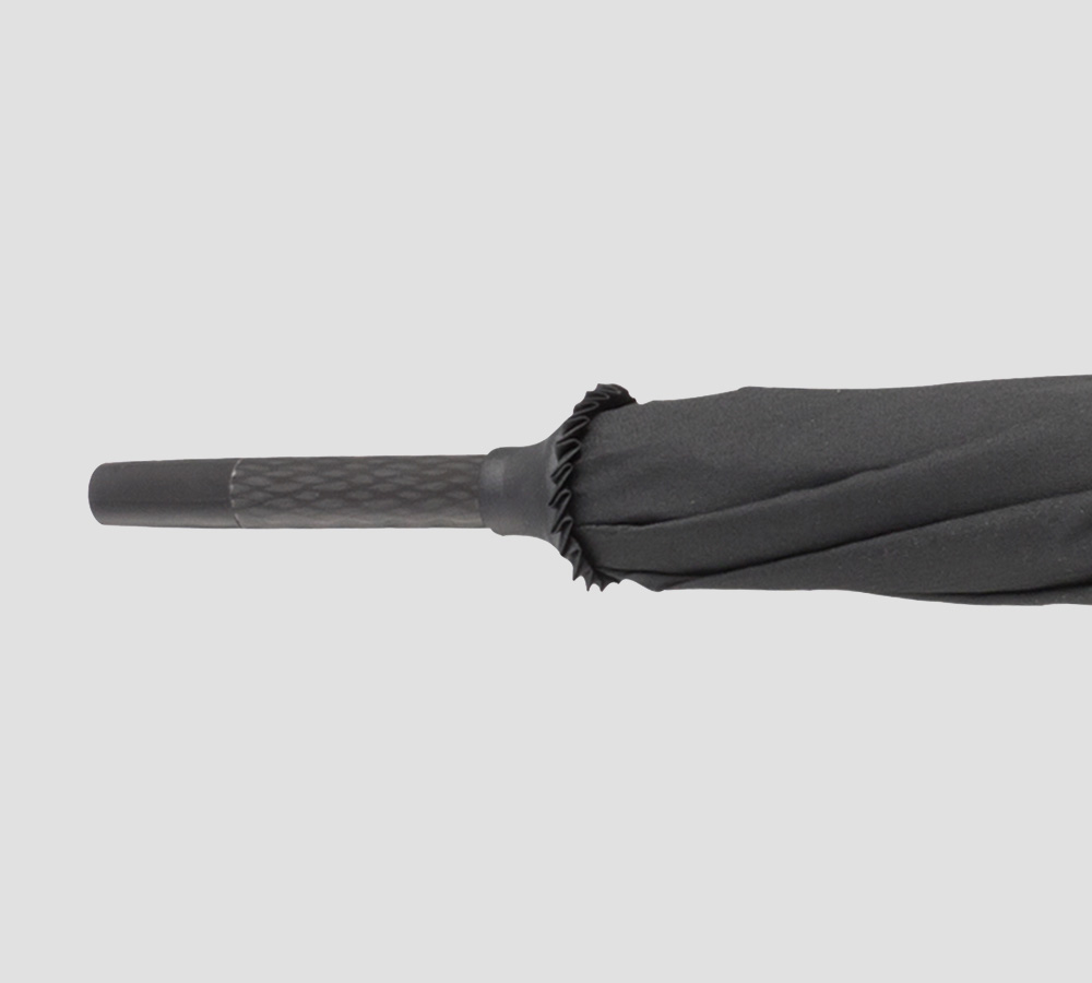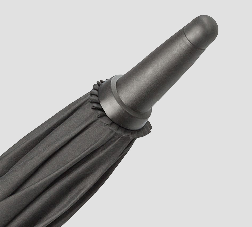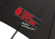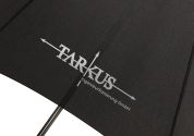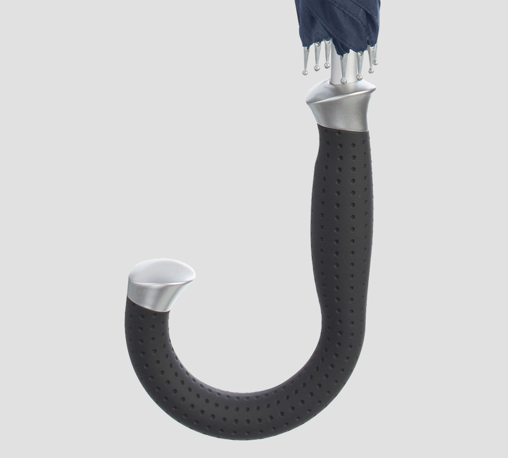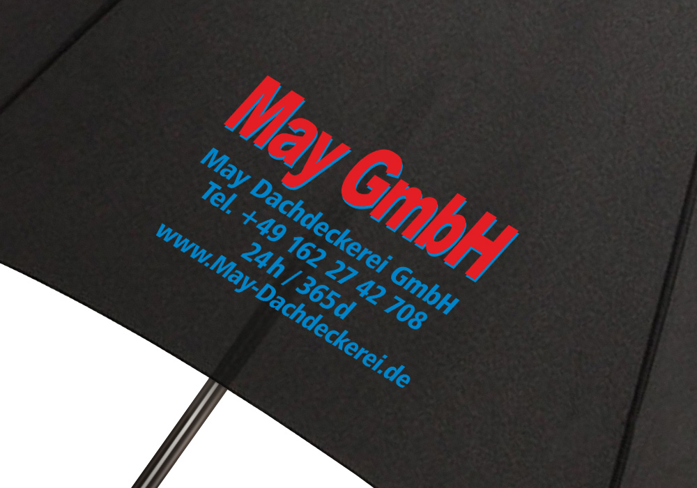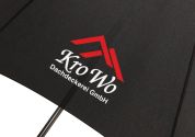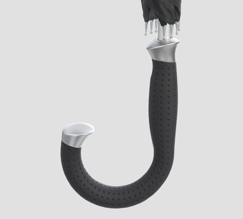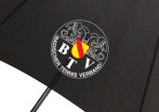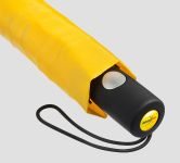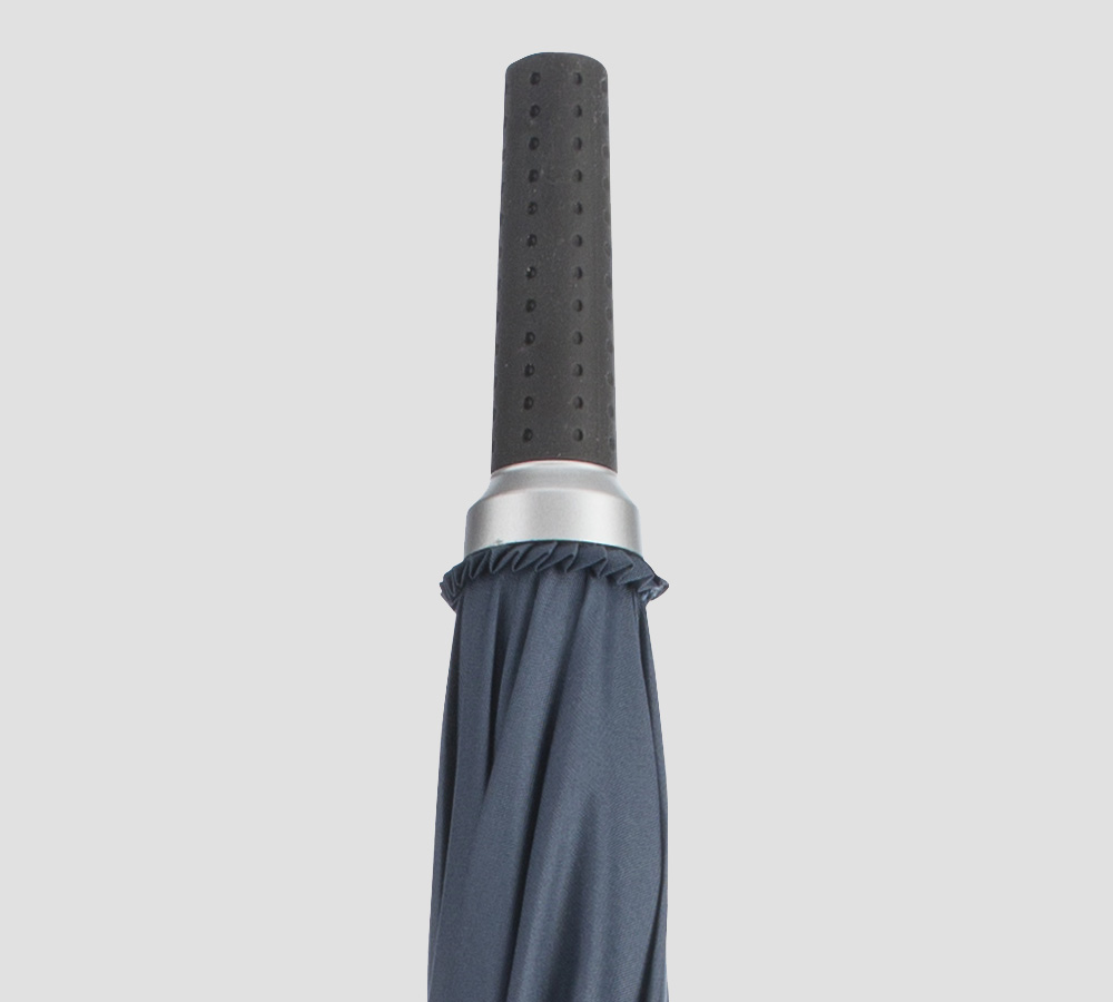 Stylischer Gästeschirm mit komfortabler Öffnungsautomatik, maximale Gestell-Flexibilität (Windproof-System) bei stärkeren Windböen, flexible Fiberglasschienen, stabiler Stahlstock mit farbiger Kunststoffummantelung, gerader Softfeel-Griff mit 7 farbigen Griffringen – passend zu Ihrem Firmenlogo!Speichenlänge: ca. 65 cm