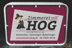 • 2mm Aluminium-Innentafel, kunststoffbeschichtet und beidseitig mit Ihrer Firmenwerbung bedruckt