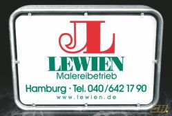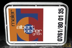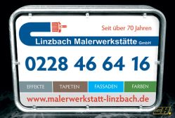 • 2mm Aluminium-Innentafel, kunststoffbeschichtet und beidseitig mit Ihrer Firmenwerbung bedruckt