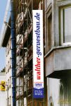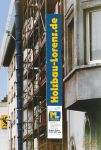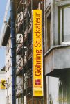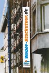 Durch die optimale Platzierung auf der Stirnseite des Gerüstes sowie die gute Gestaltungsmöglichkeit Ihres Firmennamens ist eine sehr hohe Werbewirksamkeit gegeben. Dem vorbeifließenden Verkehr fällt diese Werbeplane sofort ins Auge.