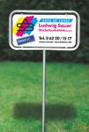 Kennzeichnen Sie Ihre Baustelle mit einem repräsentativen Spatenschild, damit potentielle Neukunden auf Sie aufmerksam werden.
