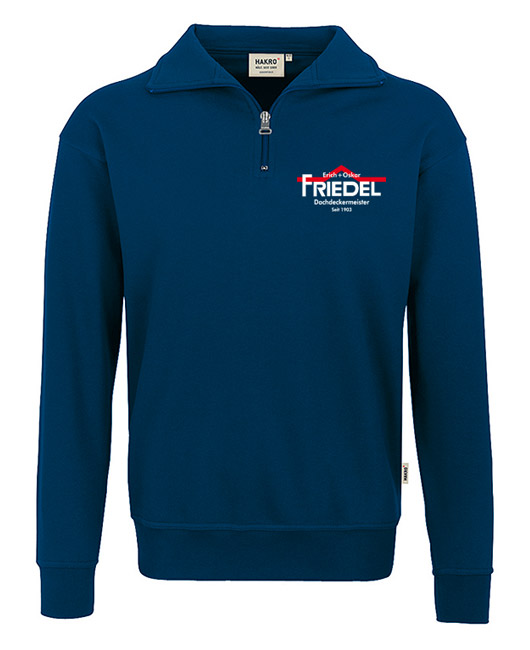 Unisex-Sweatshirt aus pflegeleichter Baumwoll-Polyester-Mischung mit Stehkragen und hochwertigem Reißverschluß. Praktische Doppelnahtverarbeitung und Nackenband. Die formstabilen Rippstrickbündchen sind zusätzlich mit LYCRA® verstärkt. 300g/qm Maschenware – 70% Baumwolle / 30% Polyester.
